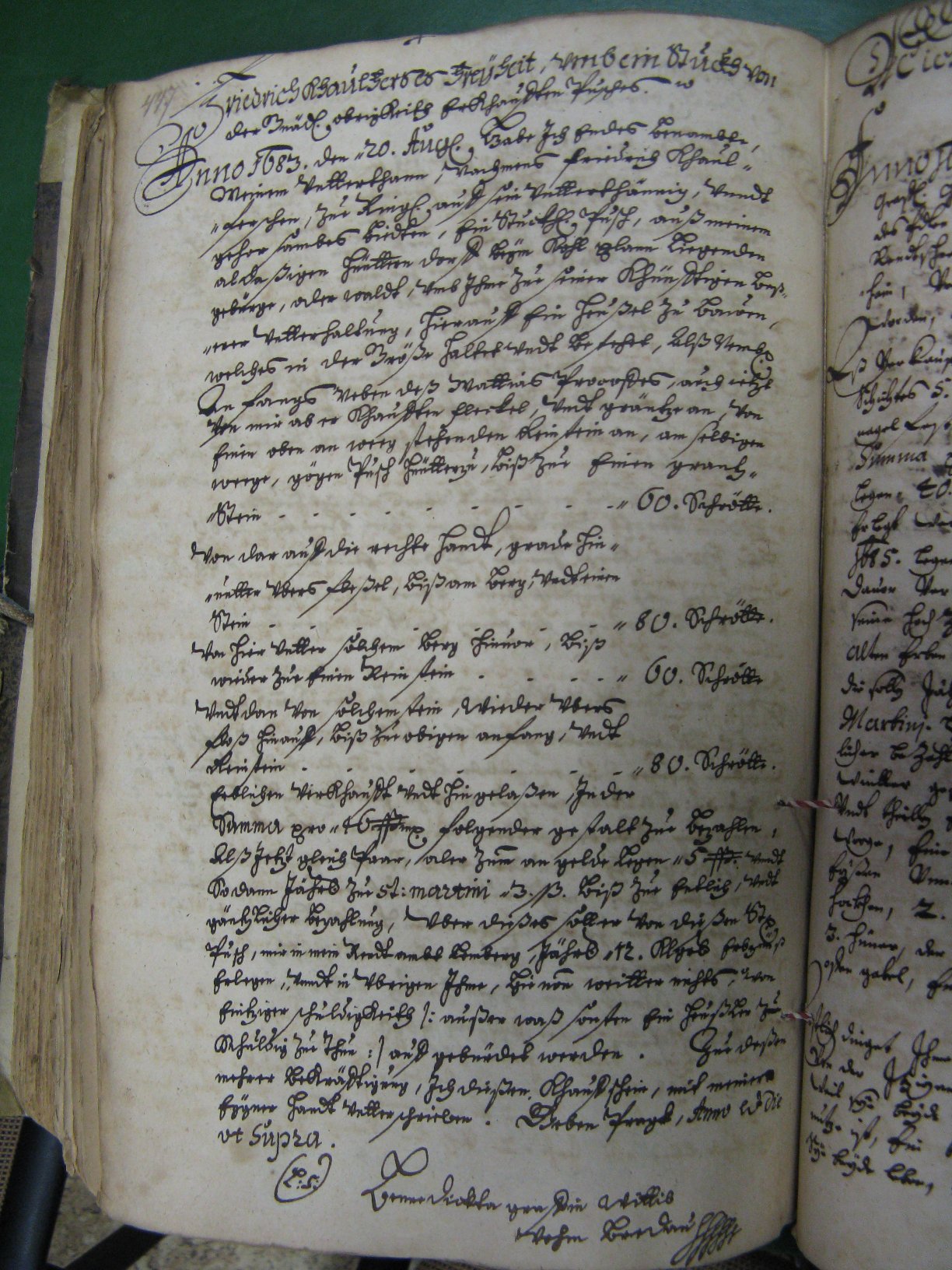 Střední část, která konkrétně vymezuje pozemky, je pochopitelně v každé smlouvě jiná. O tom, že Sebastian Finke byl vrchností vybrán jako jakási vůdčí osobnost nově založené osady, svědčí i to, že vymezení jeho pozemku je zdaleka nejpodrobnější a odkazuje se na několik patrně místně význačných stromů (smrk, jedle, buk). Rovněž jde o pozemek největší, 70 x 70 x 185 x 175 kroků. Pro představu, jeden krok činil 0,8 metrů, tedy plocha pozemku byla přes 8000 metrů! Za tento pozemek zaplatil Finke 47 kop míšeňských grošů, zatímco například Friedrich Kaulfersch zaplatil téměř stejnou částku (46kop) za pozemek jen o málo větší než 3000 m2… Ani zbylí dva na tom nebyli jinak, takže to vypadá, že se hraběnka z Bredau Sebastianu Finkemu opravdu touto formou odvděčila za věrné služby.