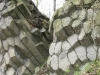 Vydáme-li se po ní vzhůru, vystoupáme po chvíli na kraj zdánlivě malého lesíka, který se rozkládá uprostřed hornosedelských luk. Jak se ale ukáže, lesík je spíš pořádným lesem a skrývá v sobě zbytky starého lomu, kde se po dlouhá léta těžily právě čedičové sloupky. A nejednalo se rozhodně o lom malý! Rozsah těžební plochy je odhadem 1,3 ha, tedy asi 13.000 m2. To jsou jen čísla, ale vstoupíte-li poprvé do lomu, jeho impozantní rozměry, ačkoliv se ztrácejí v husté vegetaci, Vás překvapí. Ještě před vlastním vstupem do lomu stojí ale za povšimnutí zbytky různých technologických staveb, dnes již nejasného použití, dílem z betonu, ale i využívajících právě čedičové sloupky.