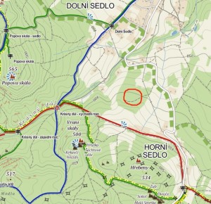Stejný původ má i čedičový lom, nacházející se na půl cesty mezi Horním a Dolním Sedlem. Sjíždíme-li po silnici z Horního Sedla, asi tak po kilometru a půl odbočuje vlevo nahoru do svahu již značně zarostlá cesta, vroubená křovinami.