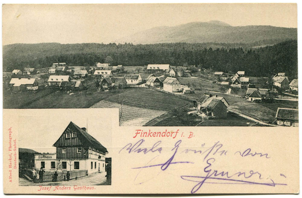 Tak tuhle litografii jsme sice už v archívu měli, ale ne v takovém rozlišení a navíc pěkně datovanou k červnu roku 1905. Obě pohlednice se navíc v drobných detailech liší, na té z archívu je ještě uvedeno, že v popředí je hostinec Carla Linkeho, což na této chybí. Snad se u nás na výletě pánům Schimoneckovi, Richterovi, Klimekovi, Backofenovi a Melchiorovi líbilo!