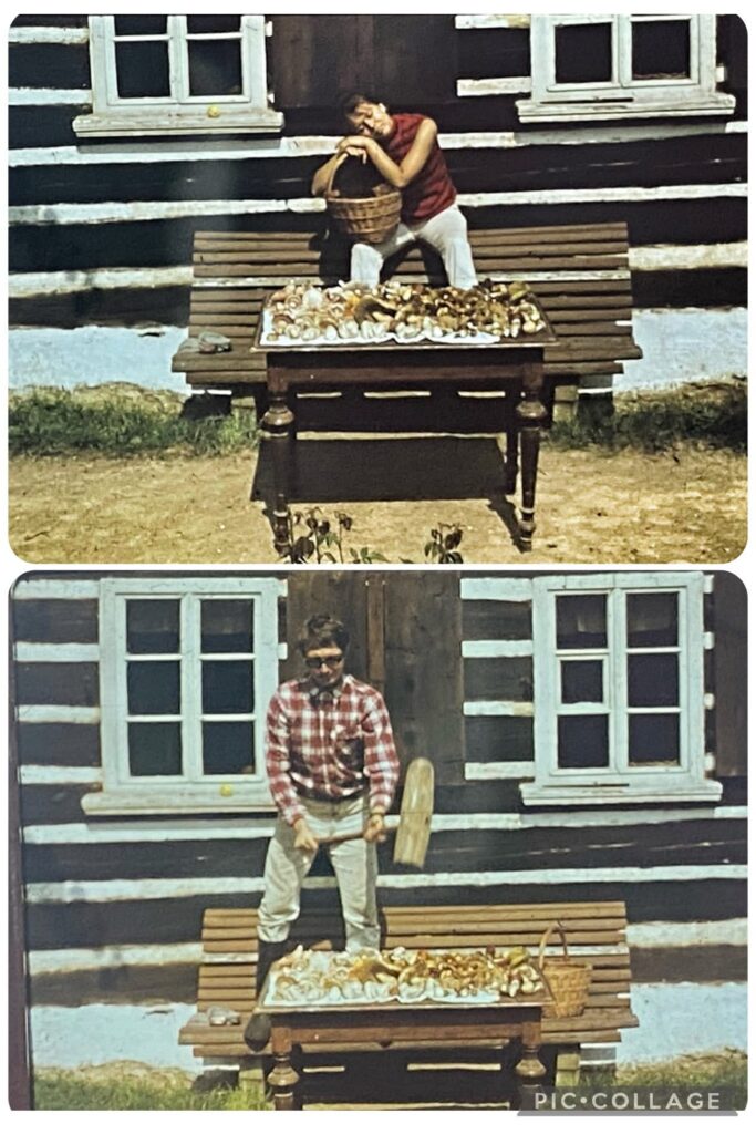 Kam až moje paměť sahá, chodilo se do lesa napřed na borůvky a pak na houby. V předškolním věku, tedy v letech, kdy se rodiče museli při každém příjezdu do Polesí nad tři dny zaregistrovat na MNV a pro příbuzné vést domovní knihu, bylo hub strašně a lidí, kteří na houby chodili, bylo naopak, vzhledem k rozsahu okolních lesů, minimálně . Rekord v množství hub byl asi v letech 1947 – 1949, kdy naše trochu hamižná babička vzala do „háječku“, což byl tehdy mladý lesík směrem ke Slonu, koš na prádlo. Sbíralo se tehdy samozřejmě jen to nejlepší, tedy hřiby, křemenáče a kozáky, takový potěr jako lišky nebo hnědáky jsme v lese nechávali, masáky neznali. Modráky jsme v lese nechávali také, pletli jsme si je s obávaným satanem, o holubinkách nemluvě, to byly prostě pro nás jakési muchomůrky určené k ozdobě lesa. Já nemám na tuhle pravěkou dobu zrovna nejlepší vzpomínky, neboť jsem musel doprovázet strýce Dudlíka, který byl po mrtvici, chodil o holi a nesměl se sehnout, takže mojí radost z eventuálního nálezu strejda kazil věčným „Péťo, tule mi seber hříbečka a dej mi ho do košíku“, což se opakovalo během výpravy do lesa asi dvěstěkrát. Pak se přišlo domů a houby se čistily, což také nebyla tenkrát práce tak milá, jako o mnoho let později, když se sušily houby na rámech a ne na novinovém papíře jako v těch čtyřicátých letech, vařila se kulajda, smažily se houbové řízky a připravovalo se hovězí na houbách s knedlíkem. To ovšem píšu o konci let padesátých, kdy se začala trousit do Polesí auta chalupářů, jejich příbuzných a návštěv, v lesích se začal postupně ozývat řev víkendových houbařů a hub začalo ubývat, i když jsme na každé výpravě našli toho svého „krále hub“, nejkrásnějšího hřiba široko daleko nebo alespoň v našich představách dvoukilového „křemendu“ – samozřejmě úplně bez červů, určeného k fotografování než se upravil na všechno, co jsme si přáli. Pak se do toho zapletla změna klimatu, objevily se bedly, sbíraly se masáky, už jsme konzumovaali občas i holubinky, ovšem ty jedlé, jak jsme se naučili z příslušných příruček a televizních pořadů. Byla to doba, kdy syn kamaráda z Berlína, odchovaný pohádkami bratří Grimmů volal při cestě ke Třím pánům radostně „dunkel wald“ a já s jeho tatínkem chodil do lesa spíš na dřevo, což objemný Eberhard považoval za skvělé cvičení a já se chlubil, že mám tuzexového gastarbeitra.